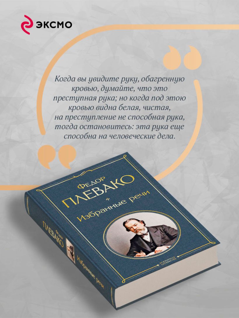 В книге представлены судебные речи выдающегося адвоката Федора Никифоровича Плевако (1842—1908), известного своей ораторской магией и вниманием к человеческим судьбам, а также способностью выигрывать самые сложные и запутанные дела.