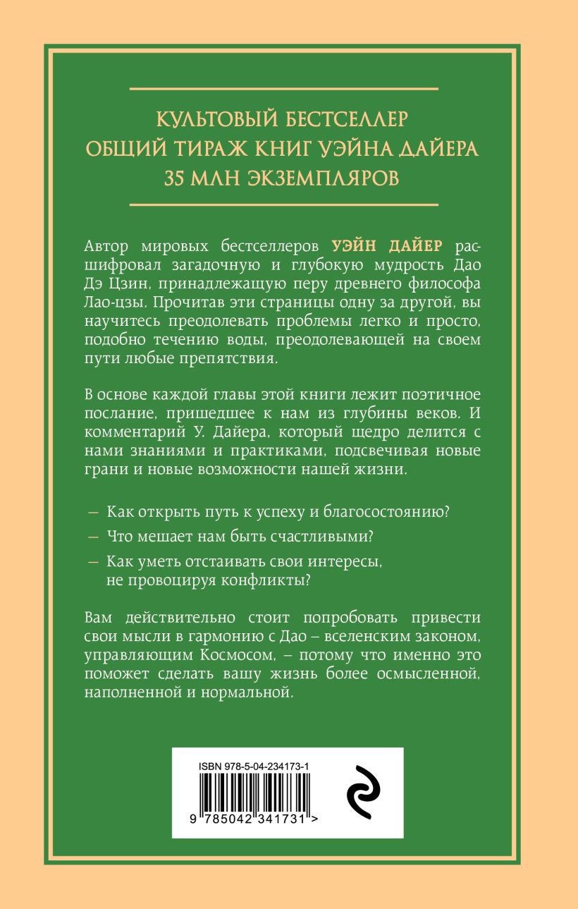 О том, что мысли способны управлять нашей жизнью, пишут и говорят сейчас многие. Но автор знаменитых на весь мир работ по самопознанию Уэйн Дайер написал об этом так, что его книга стала на Западе культовым бестселлером. В своей работе Дайер расшифровал загадочную и глубокую мудрость Дао Дэ Цзин - подлинного послания, оставленного миру Лао-Цзы, одним из величайших философов. Как стать счастливым? Как притянуть в свою жизнь успех, благосостояние, исполнение своих заветных желаний? Попробуйте привести свои мысли в гармонию с Дао - вселенским законом, управляющим Космосом – и ваша жизнь изменится к лучшему.