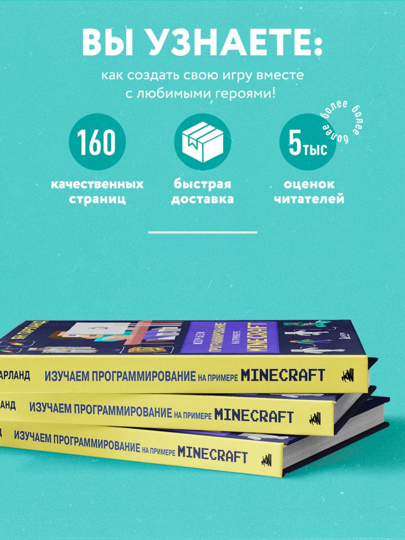 Эта забавная и познавательная книга познакомит детей с захватывающим миром программирования с помощью их любимой игры Minecraft. Знакомые персонажи и сюжеты сделают обучение интересным, а яркие иллюстрации помогут с легкостью разобраться даже в самых сложных заданиях. Вы узнаете о циклах, переменных и функциях и, конечно же, научитесь их применять. Каждый ребенок найдет что-то интересное для себя — будь то создание сайта Стива или анимация крипера.