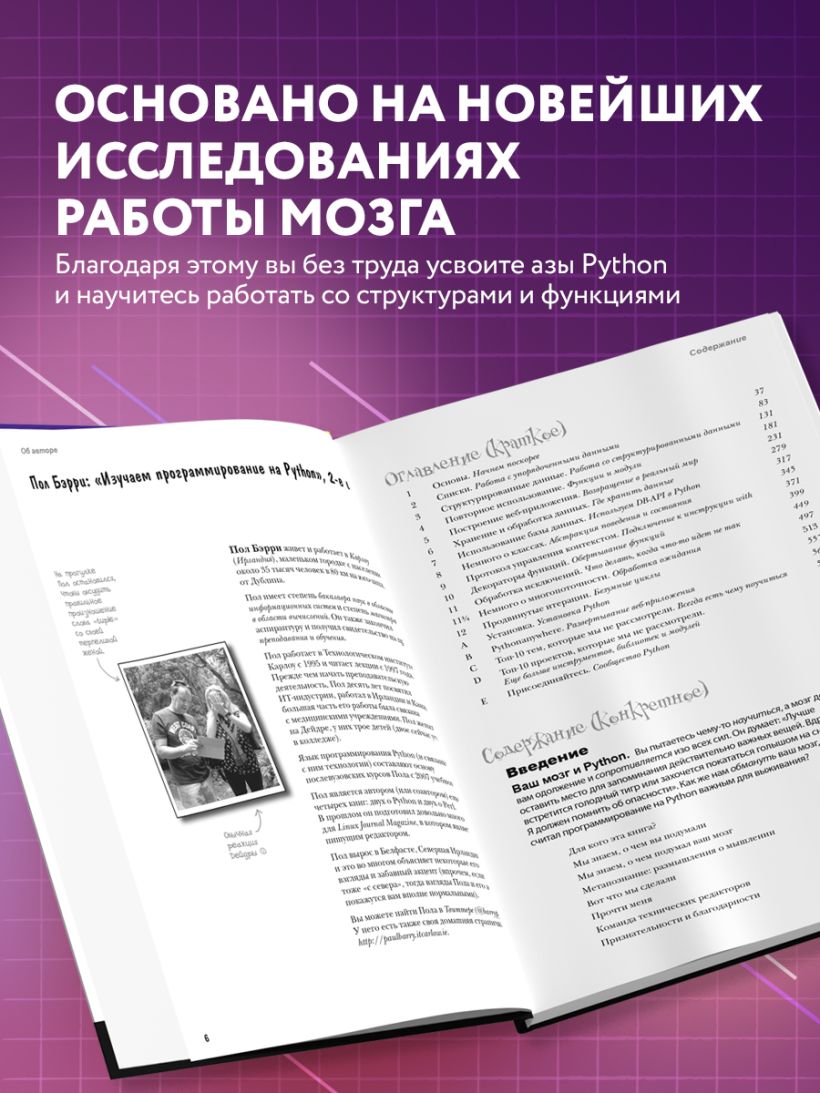 Учимся просто, применяем профессионально. Пособие для тех, кому нужно познакомиться с Python Сегодня навык программирования требуется не только в профессиях, связанных с ИТ. Даже если вы не занимаетесь профессиональной разработкой программного обеспечения, вам может понадобиться написать компьютерную программу или поучаствовать в разработке в рамках научных проектов или в профессиональной практике. Кроме того, программирование отлично формирует логическое мышление. Те, кто в этом подкован, умеют лучше анализировать проблемы и оперативно находить решения. Эта книга особенно полезна для тех, кто только начал изучать Python и не имеет глубоких знаний. Все темы объясняются максимально просто, а упражнения и практические примеры охватывают множество областей применения. Так что вы будете оптимально подготовлены к широкому кругу задач. Пособие можно использовать как в качестве основного материала для расширенного курса программирования, так и для самостоятельного обучения. • Типы данных • Структуры управления • Функции и модули • Сохранение данных • Графические пользовательские интерфейсы • Объектно-ориентированное программирование • Базы данных SQL с sqlite3 • Научные вычисления с NumPy • Визуализация данных с помощью matplotlib • Использование CoLab и Python Anywhere • Веб-программирование с помощью CGI и WSGI • Профессиональная разработка ПО • Стартовые проекты Об авторе МИХАЭЛЬ ВАЙГЕНД — доктор наук по информатике, более 30 лет преподает в Хагенском заочном университете и читает лекции по программированию на Python в университете Мюнстера. Опубликовал свыше 60 научных статей и написал несколько книг по программированию, веб-разработке и визуальному моделированию.