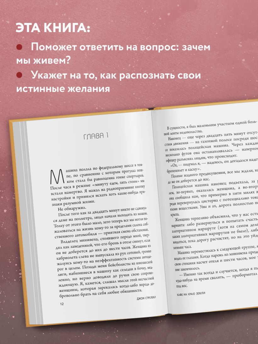 После долгого блуждания в темноте и неизвестности всё, что вам нужно — зайти в уютное кафе, выбрать столик и раскрыть меню. Вместе с главным героем Джо вы пройдете короткий, но полный удивительных открытий путь — путь к самому себе. Каждому из нас необходимо хоть раз остановиться посреди суеты и тревог современного мира и ответить на главный вопрос: «Почему я здесь?» Понять, что действительно значимо, увидеть цель своей жизни в дымке будущего и двигаться к ней, каждый день ощущая себя счастливым. Эта книга — мировой бестселлер, переведенный на 30 языков — вдохновит вас на перемены, о которых сегодня вы можете только мечтать.