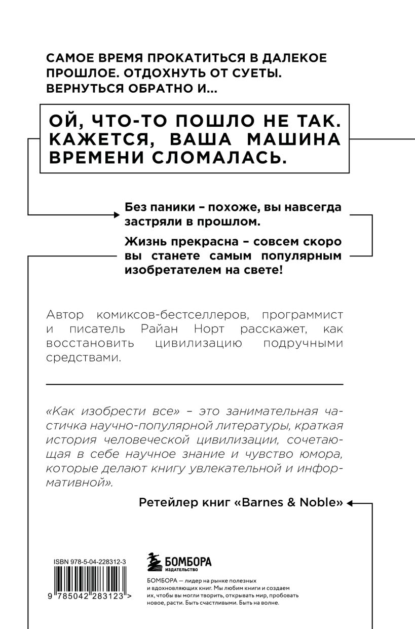Отфильтровать воду? Создать антибиотик? Собрать радио и паровой двигатель? Приготовить пиво, да еще и хранить его в холодильнике? Легко, если вы, конечно, не забыли захватить с собой руководство по выживанию «Как изобрести всё». Эта книга сделает вас умнее, сообразительнее и поможет стать самым влиятельным человеком на Земле. Даже если для этого вам не придется возвращаться в прошлое.
