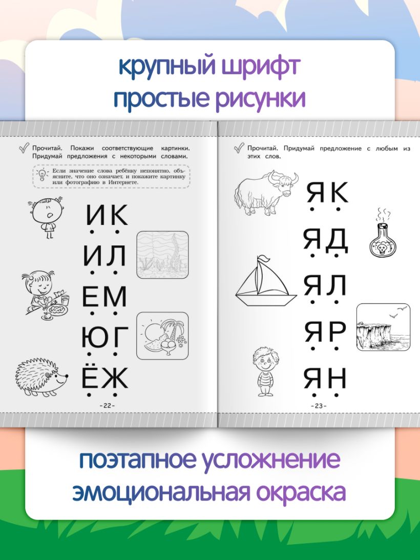 Букварь-тренажер, созданный в издательстве «Эксмо» по уникальной авторской методике, станет для дошкольника первым шагом в мир чтения и письма. На страницах обучающей книги для детей ребенок сделает свои первые уверенные шаги к осознанному чтению и сможет качественно подготовиться к школе, а взрослый получит рекомендации, которых порой не хватает для качественных занятий с ребенком. Сначала взрослый читает и эмоционально окрашивает прочитанное, например, поет гласные, показывает, что «А» может выражать и радость, и смех, и боль. Так ребенок понимает, что даже одна прочитанная буква имеет значение. Для того, чтобы дошкольнику было проще освоить навык чтения, слова с помощью специальных знаков разделены на единицы чтения. Ничего в этой развивающей книге не будет отвлекать девочек и мальчиков от занятий, поэтому процесс обучения будет легким, радостным, эффективным, а результат быстрым и устойчивым. Этот необычный букварь станет лучшим подарком для ребенка и поможет научить читать даже тех детей, которые не любят заниматься. Методика, положенная в основу пособия, подтверждает свою эффективность на практике в течение длительного времени.