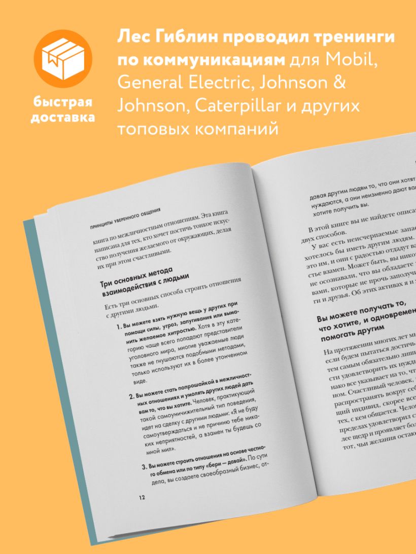 Получайте всё, что вам нужно, с помощью грамотно выстроенной коммуникации. От супруга — поддержку и понимание, от босса — признание и повышение по службе, от друзей — помощь и вдохновение. Все успешные отношения подразумевают взаимовыгодный обмен: вы даете человеку то, что ему нужно, и в ответ получаете желаемое. Любой другой способ взаимодействия обречен на неудачу, и рано или поздно такое общение прекращается. Чтобы стать гуру коммуникации и обрести уверенность в общении с людьми, освойте простые и действенные правила, основанные на принципе обмена. Их автор, Лес Гиблин, признанный эксперт в области человеческих отношений, провел более тысячи семинаров по коммуникационным навыкам и основал собственный «Центр человеческих отношений». По всему миру было продано более миллиона экземпляров его книг.