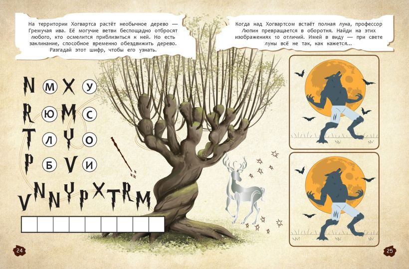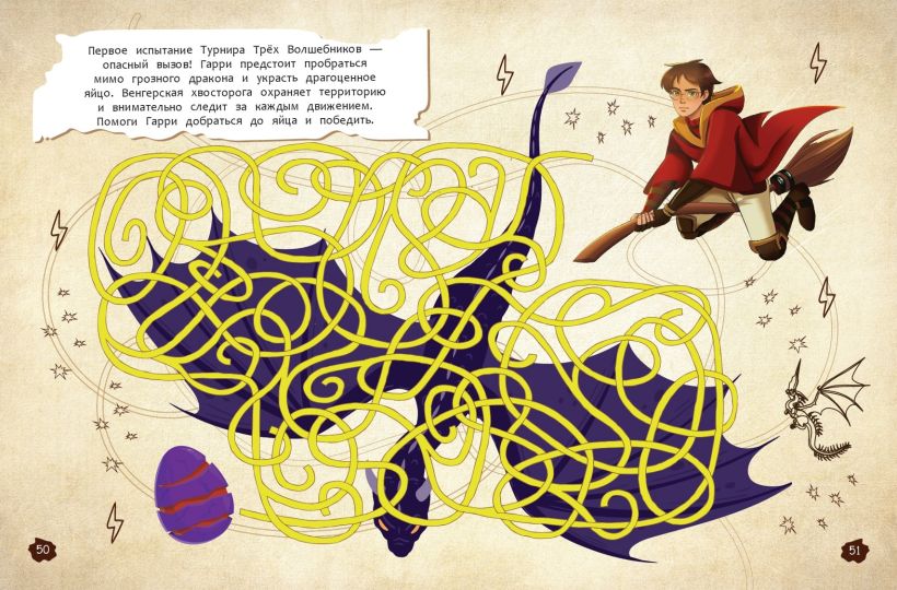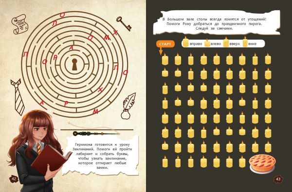 Погрузись в чарующий и загадочный мир Гарри Поттера, чтобы узнать все тайны заколдованного замка. Тебя ждут увлекательные головоломки, захватывающие игры, хитроумные шифры и задания на логику, которые бросят вызов смекалке даже самого одарённого волшебника. Разгадай тайное послание от Дамблдора, найди путь в Запретном лесу, помоги Гермионе приготовить оборотное зелье, выясни, кто прокрался в запретную секцию библиотеки и что за самозванец выдаёт себя за профессора Грюма… И торжественно клянись, что замышляешь шалость и только шалость! Готов к приключениям? Тогда бери волшебную палочку и начинай!