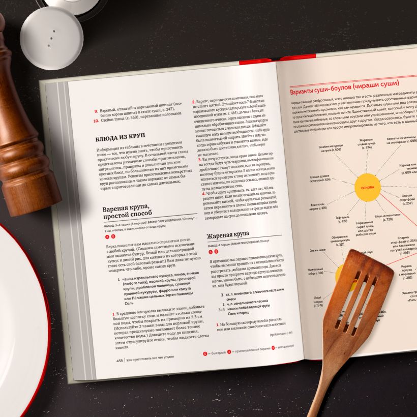 «Когда книга "Как приготовить все что угодно" появилась более двух десятков лет назад, друзья и коллеги подшучивали над тем, что в названии было заявлено "все". Но мы с издателем настаивали на гиперболе, поскольку знали, что предлагаем не просто руководство по основным техникам и распространенным ингредиентам, а сотни вариантов, показываем, как и чем произвести замены». — Марк Биттман