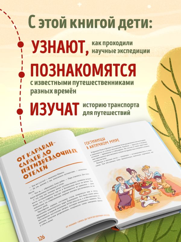 Эта книга отправит юных читателей в увлекательное путешествие через века, рассказывая о том, как развивались способы передвижения, что вдохновляло людей отправляться в путь и как прогресс, изобретения и открытия меняли облик туризма.