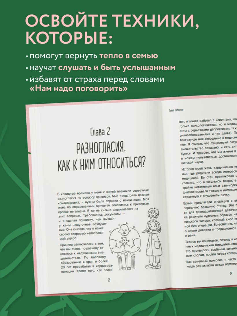 Психолог и гипнотерапевт Павел Лебедько более 30 лет помогает людям справляться с такими сложными ситуациями, как: развод, измена, потеря интереса к партнеру, ссоры с детьми, взаимные обиды. В книге автор собрал проверенные техники, которые помогут вернуть утраченное тепло в отношения и построить диалог без упреков. Эти практики устроены по-разному: одни работают в стиле «делай раз, делай два», а другие воздействуют на ментальные установки, превращая вас в мастера переговоров.