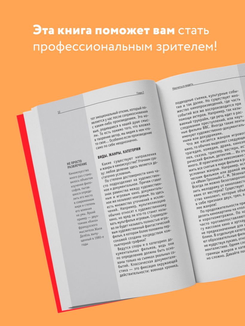 Авторы этой книги объяснят, как смотреть кино, ведь вряд ли ответь «сесть и смотреть» кого-то устроит. Кино — сложное и многогранное искусство, и если не знать, как смотреть, можно упустить много интересного. Чтобы делать это осознанно, нужно понимать, как делается фильм (сценарий, режиссура, актеры, грим, декорации, монтаж, спецэффекты, музыка); представлять основные этапы развития кино и их особенности; знать основные жанры и категории.