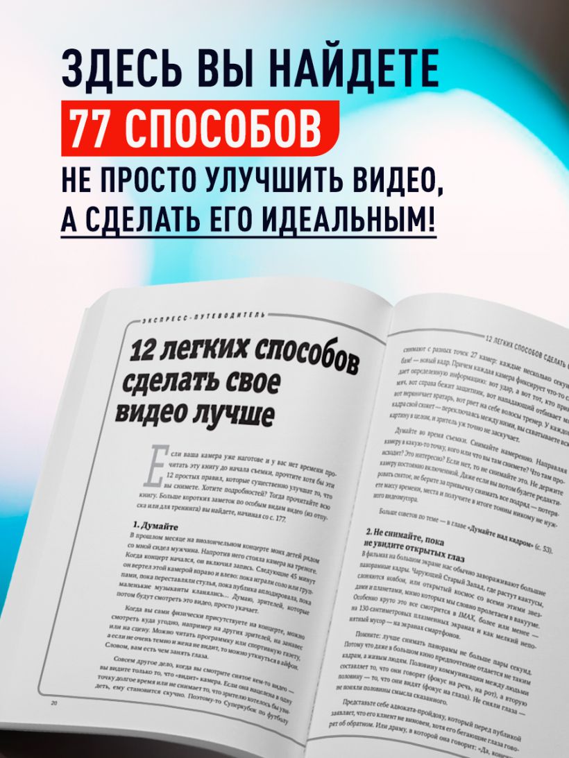 Автор книги уверен, что видео — мощный инструмент коммуникации, который может изменить ход истории, вдохновить и помочь общению. Снимаете ли вы день рождения своего ребенка, делаете ли промо-ролик какого-нибудь продукта или создаете сенсационное видео для YouTube, книга поможет вам не просто улучшить видео, а сделать его идеальным!