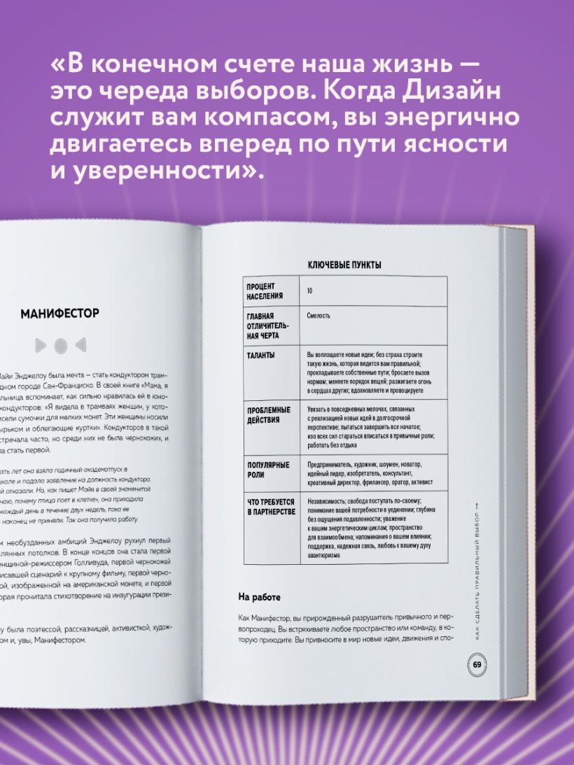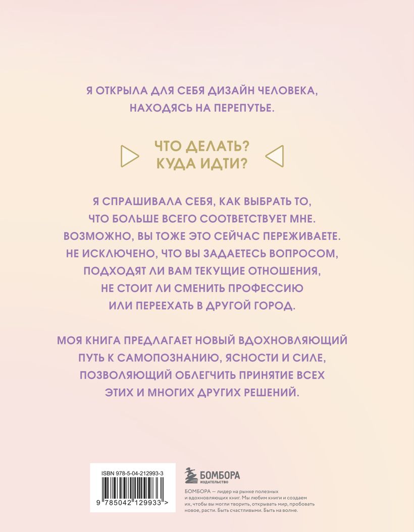 Я открыла для себя Дизайн человека, находясь на перепутье. Что делать? Куда идти? Я спрашивала себя, как выбрать то, что больше всего соответствует мне. Возможно, вы тоже это сейчас переживаете. Не исключено, что вы задаетесь вопросом, подходят ли вам текущие отношения, не стоит ли вам сменить профессию или переехать в другой город. Моя книга предлагает новый вдохновляющий путь к самопознанию, ясности и силе, позволяющий облегчить принятие всех этих и многих других решений.