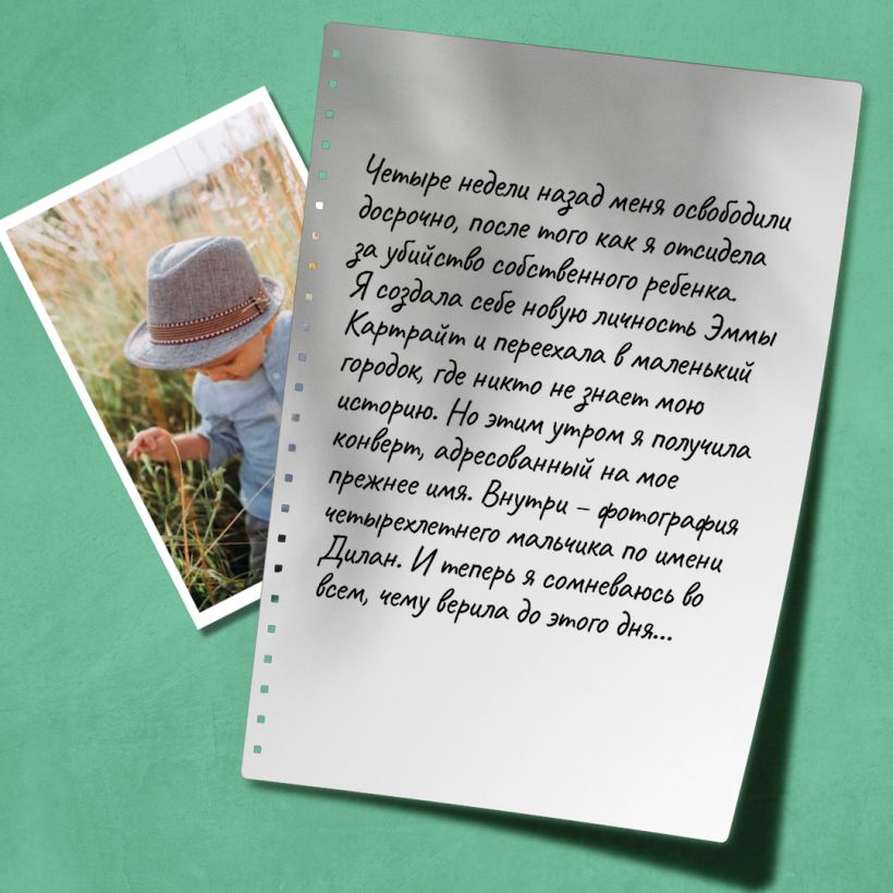 Четыре недели назад меня освободили досрочно. Я создала себе новую личность Эммы Картрайт и переехала в маленький городок, где никто не знает мою историю. Этим утром я получила конверт, адресованный на мое прежнее имя. Внутри — фотография четырехлетнего мальчика по имени Дилан.