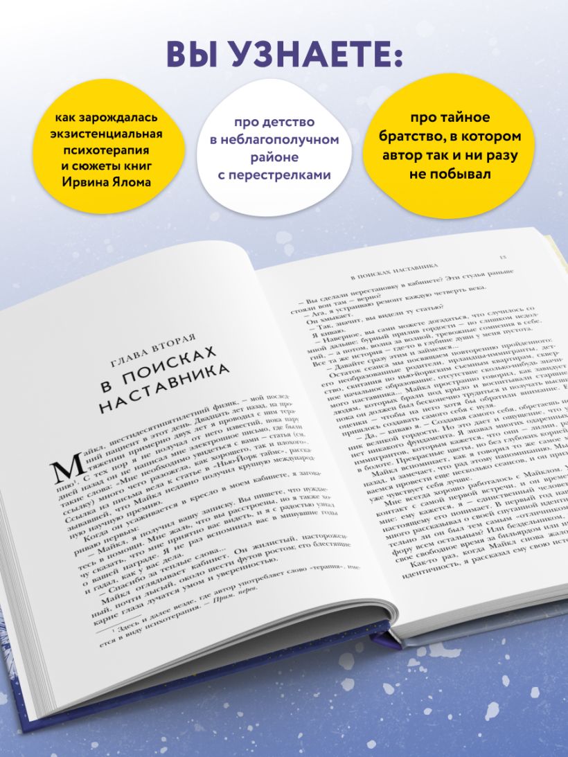 Путь к себе, как известно, каждый ищет по-разному. ИРВИН ЯЛОМ выбирает для этого мемуары. Перешагнув на тот момент рубеж своего 85-летия, он решил записать все, что было радостного и печального в его жизни. Цепочка воспоминаний, описанная чистым и ясным слогом, заставит вас проникнуться историей одного из самых знаменитых психологов нашего времени и расскажет о том, что сделало его таким, каков он есть.