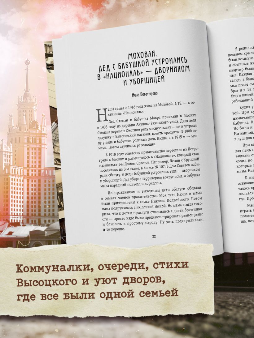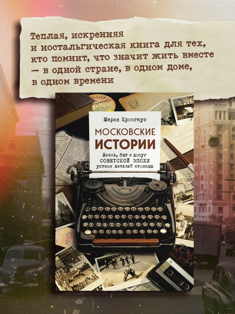 Эта книга — уникальная коллекция подлинных историй москвичей, проживших советскую эпоху. Здесь нет выдумки: только память, запахи, звуки и детали, которые невозможно придумать. Как уместить четыре поколения в 16 метрах? Как делили ванну с соседями и почему у каждого был свой тазик? Как звучали дворы Москвы 40-х, 60-х и 80-х?