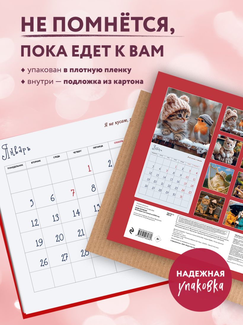 Календарь Татьяны Мужицкой с яркими иллюстрациями от Влады Коваль! В сетке — вдохновляющие цитаты автора и необычные праздники вроде «Всемирного дня “Спасибо”» и «Международного дня заботы о себе». Каждый месяц — как напоминание: жить можно с радостью, легкостью и любовью к себе. Совокупный тираж книг Татьяны Мужицкой — 360 000 экземпляров. Наши настенные календари отличаются высоким качеством исполнения! Тщательно подобранные иллюстрации, напечатанные на глянцевой бумаге высочайшего качества, станут настоящим украшением дома, а в календарной сетке найдется место для ваших планов: большие клетки позволят делать записи и организовать свой год! В серии настенных календарей издательства «ЭКСМО» каждый найдет тему по вкусу: великие художники, великолепные подборки с самыми знаменитыми произведениями искусства, легендарные кинематографические саги и игры, главные книжные авторы и бестселлеры, фотографии и иллюстрации любимых животных и многое-многое другое! Технические параметры: - Тип календаря — настенный перекидной. - Год — 2026. - Календарная сетка — с разбивкой по месяцам. - Вид скрепления — скрепка. - Ширина — 30 см. - Высота — 30 см. - Внутренний блок — мелованная бумага 150 г/м2. - Подложка — плотный гофрокартон для поддержания формы. - Индивидуальная упаковка в плотный целлофановый пакет.
