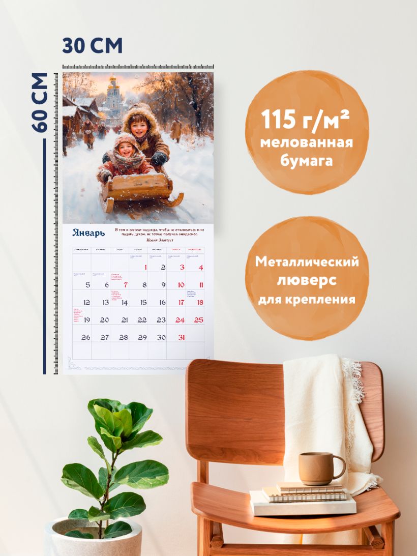 Наши настенные календари отличаются высоким качеством исполнения! Тщательно подобранные иллюстрации, напечатанные на глянцевой бумаге высочайшего качества, станут настоящим украшением дома, а в календарной сетке найдется место для ваших планов: большие клетки позволят делать записи и организовать свой год! В календаре также отмечены все государственные праздники.