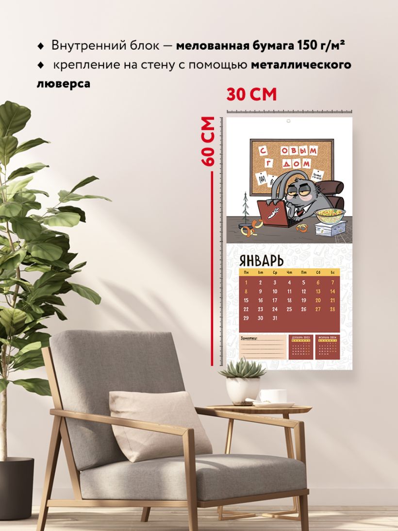 Наши настенные календари отличаются высоким качеством исполнения! Тщательно подобранные иллюстрации, напечатанные на глянцевой бумаге высочайшего качества, станут настоящим украшением дома, а в календарной сетке найдется место для ваших планов: большие клетки позволят делать записи и организовать свой год! В календаре также отмечены все государственные праздники.