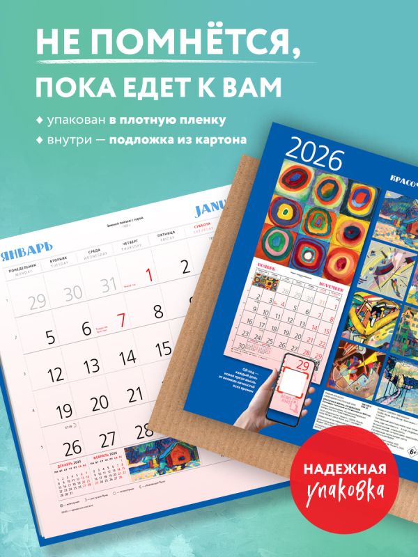 Практичный и эстетичный, этот календарь каждый месяц будет радовать вас. Прекрасные картины органично дополнят любой интерьер и помогут планировать время. В этом календаре представлены шедевры кисти Василия Кандинского.
