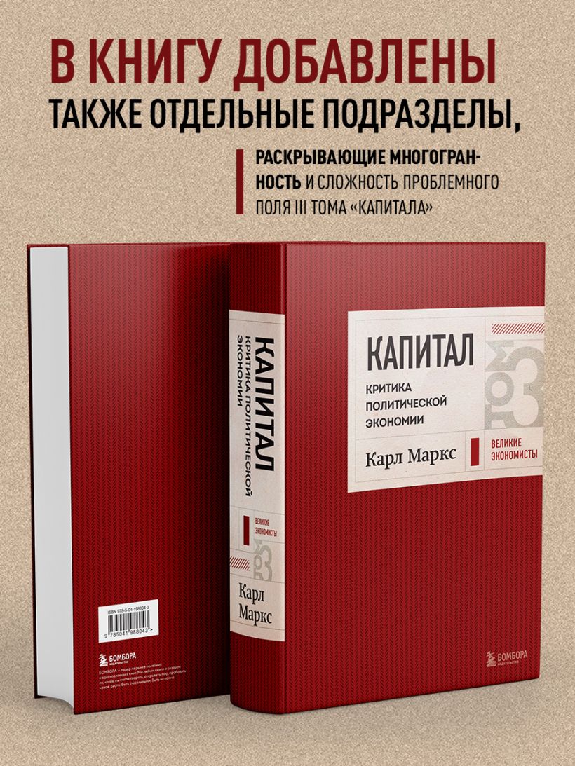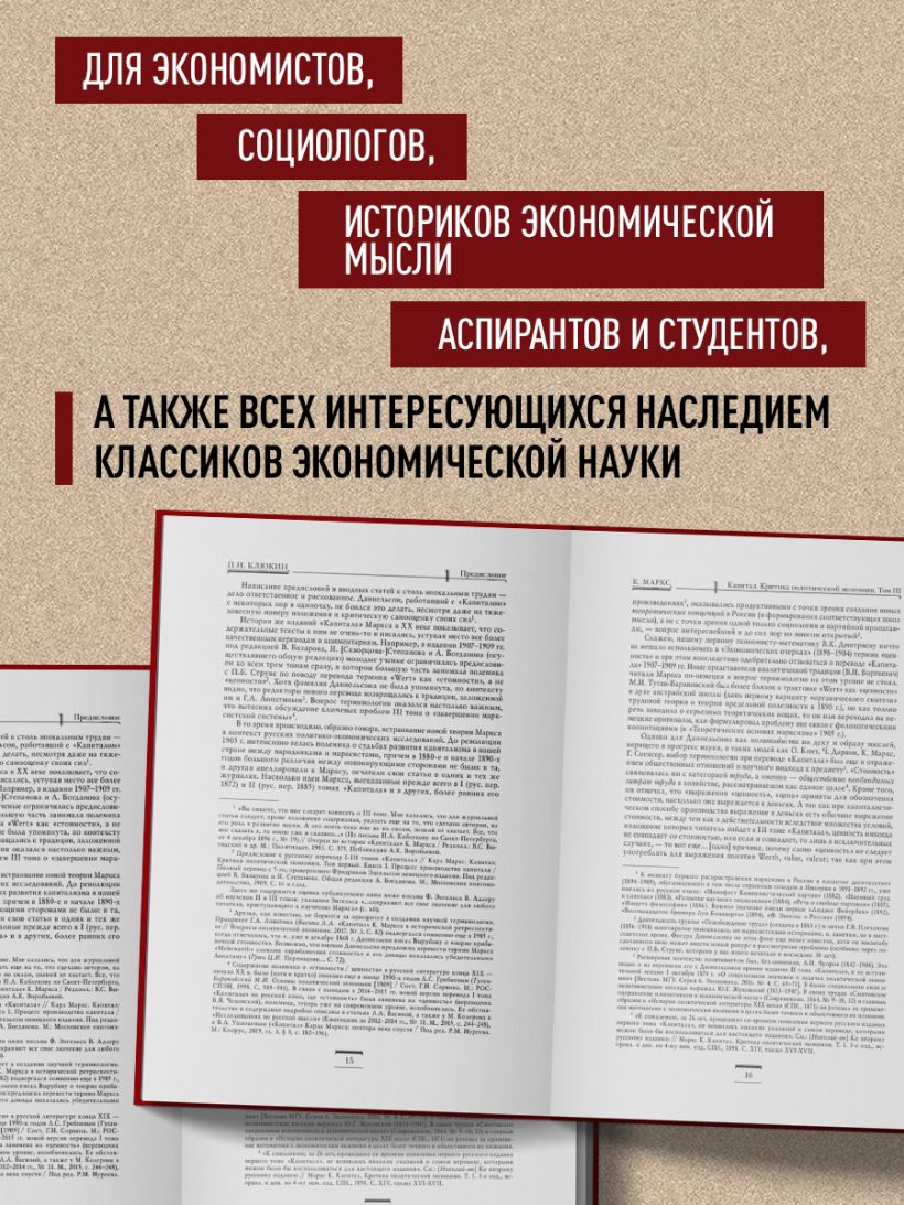 В книгу добавлены отдельные подразделы, раскрывающие многогранность и сложность проблемного поля III тома «Капитала». Один подраздел посвящен памяти и труду замечательного нашего переводчика «Капитала» и экономиста Н.Ф. Даниельсона (1844—1918), впервые представившего текст III тома русской публике в 1896 г. Второй подраздел образует крайне малоизвестный в России текст 1905 г. одного из самых глубоких представителей тогдашнего ревизионизма Эд. Бернштейна (1850—1932). Третий подраздел составлен из классики количественной трактовки I и III томов «Капитала» — перевода оригинальной статьи 1907 г. (с ее современным осмыслением) видного представителя российской аналитической традиции, статистика и экономиста с мировым именем В.И. Борткевича (1868—1931).