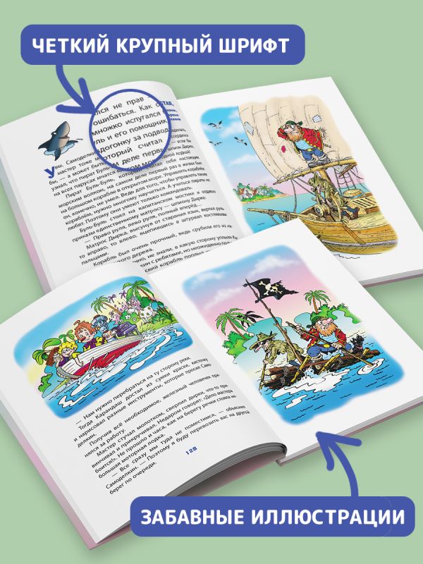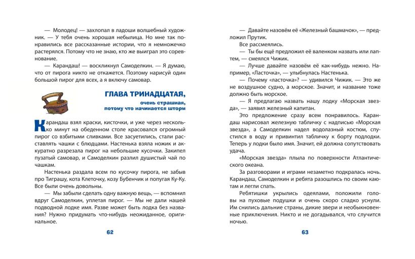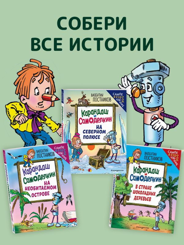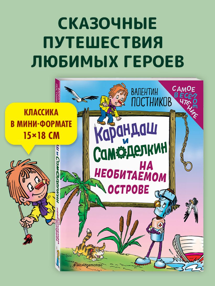 УВЛЕКАТЕЛЬНЫЕ, ПОЗНАВАТЕЛЬНЫЕ, ЯРКИЕ СОВРЕМЕННЫЕ СКАЗКИ С ИЛЛЮСТРАЦИЯМИ ВЫДАЮЩЕГОСЯ МАСТЕРА АНАТОЛИЯ ЕЛИСЕЕВА! Издание удобного формата. Твёрдый переплёт с частичным лаком. Белая бумага. Чёткий, удобный для чтения шрифт. Яркие полноцветные иллюстрации. Мегапопулярные герои отечественной детской классики — волшебный художник Карандаш и железный мастер на все руки Самоделкин — рады новым встречам с читателями всех возрастов! В небольшом городе на берегу реки происходит что-то странное. По улицам едет машина с подушками вместо колёс. В жаркий летний день трава покрывается снегом. У пристани появляется прекрасный парусный корабль, а к нему подбираются страшные разбойники. Кто же всё это натворил? И кому грозит ужасная опасность?.. Больше полувека назад писатель Юрий Дружков рассказал об удивительных событиях, происходивших с весёлыми человечками, в своих книгах «Приключения Карандаша и Самоделкина» и «Волшебная школа Карандаша и Самоделкина». Затем эстафету весёлых приключений принял сын Юрия Дружкова, известный детский писатель Валентин Постников. Благодаря его неистощимой фантазии любимые герои побывают в самых необыкновенных уголках Земли и в космосе, встретятся с динозаврами и даже… поймают привидение! А читатели убедятся, что Валентина Постникова совершенно справедливо называют «самым весёлым современным сказочником». Главной «изюминкой» этих книг стали яркие, остроумные, изящные иллюстрации известнейшего советского и российского художника Анатолия Михайловича Елисеева.