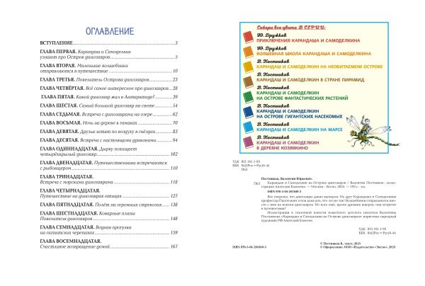 Больше полувека назад писатель Юрий Дружков рассказал об удивительных событиях, происходивших с весёлыми человечками, в своих книгах «Приключения Карандаша и Самоделкина» и «Волшебная школа Карандаша и Самоделкина». Затем эстафету весёлых приключений принял сын Юрия Дружкова, известный детский писатель Валентин Постников. Благодаря его неистощимой фантазии любимые герои побывают в самых необыкновенных уголках Земли и в космосе, встретятся с динозаврами и даже… поймают привидение! А читатели убедятся, что Валентина Постникова совершенно справедливо называют «самым весёлым современным сказочником».