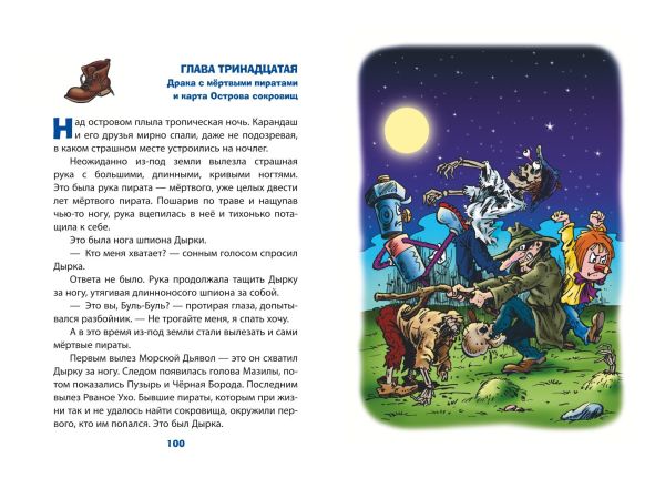 Кажется, маленькие волшебники слишком увлеклись всякими ужастиками: они даже приняли своего лучшего друга профессора Пыхтелкина за привидение! Но встретиться с призраками им всё-таки придётся. Ведь пират Буль-Буль и шпион Дырка, гоняясь за сокровищами, угодили на таинственный остров, попали в плен и теперь умоляют о помощи! Спасая незадачливых разбойников, верные друзья разрушат хитрый план коварного злодея, очистят остров от привидений и найдут настоящий пиратский клад!