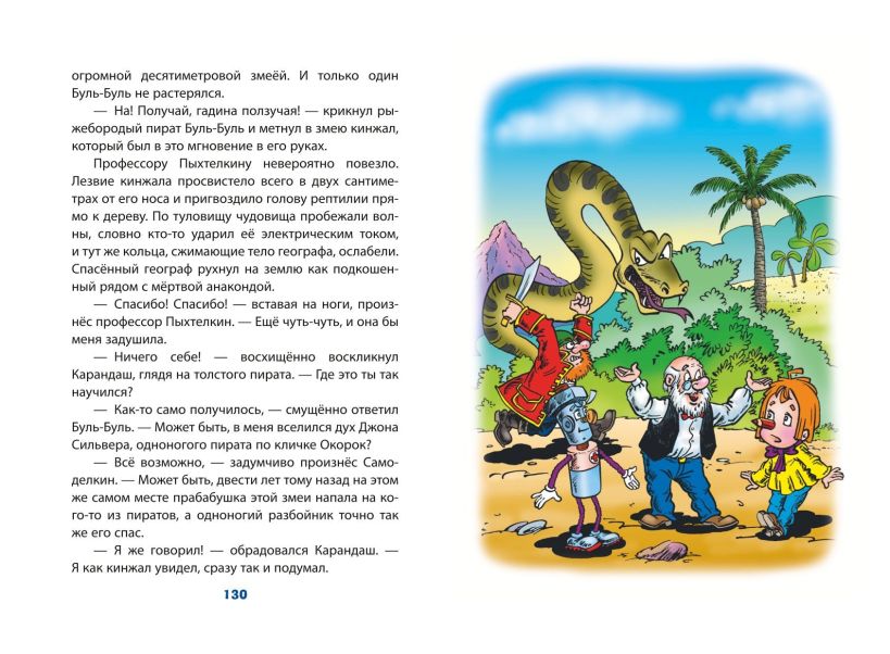 УВЛЕКАТЕЛЬНЫЕ, ПОЗНАВАТЕЛЬНЫЕ, ЯРКИЕ СОВРЕМЕННЫЕ СКАЗКИ С ИЛЛЮСТРАЦИЯМИ ВЫДАЮЩЕГОСЯ МАСТЕРА АНАТОЛИЯ ЕЛИСЕЕВА! Издание удобного формата. Твёрдый переплёт с частичным лаком. Белая бумага. Чёткий, удобный для чтения шрифт. Яркие полноцветные иллюстрации. Мегапопулярные герои отечественной детской классики — волшебный художник Карандаш и железный мастер на все руки Самоделкин — рады новым встречам с читателями всех возрастов! В небольшом городе на берегу реки происходит что-то странное. По улицам едет машина с подушками вместо колёс. В жаркий летний день трава покрывается снегом. У пристани появляется прекрасный парусный корабль, а к нему подбираются страшные разбойники. Кто же всё это натворил? И кому грозит ужасная опасность?.. Больше полувека назад писатель Юрий Дружков рассказал об удивительных событиях, происходивших с весёлыми человечками, в своих книгах «Приключения Карандаша и Самоделкина» и «Волшебная школа Карандаша и Самоделкина». Затем эстафету весёлых приключений принял сын Юрия Дружкова, известный детский писатель Валентин Постников. Благодаря его неистощимой фантазии любимые герои побывают в самых необыкновенных уголках Земли и в космосе, встретятся с динозаврами и даже… поймают привидение! А читатели убедятся, что Валентина Постникова совершенно справедливо называют «самым весёлым современным сказочником». Главной «изюминкой» этих книг стали яркие, остроумные, изящные иллюстрации известнейшего советского и российского художника Анатолия Михайловича Елисеева.