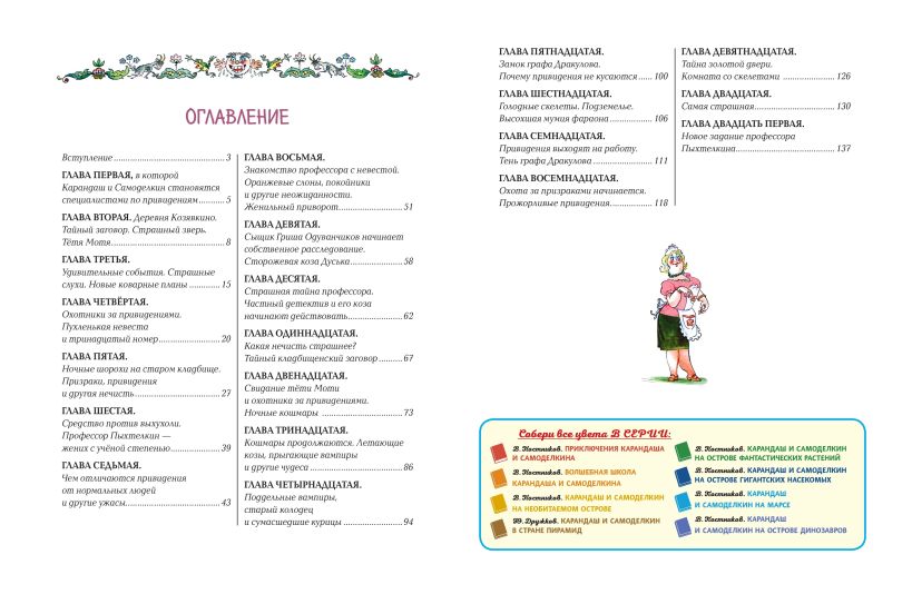Больше полувека назад писатель Юрий Дружков рассказал об удивительных событиях, происходивших с весёлыми человечками, в своих книгах «Приключения Карандаша и Самоделкина» и «Волшебная школа Карандаша и Самоделкина». Затем эстафету весёлых приключений принял сын Юрия Дружкова, известный детский писатель Валентин Постников. Благодаря его неистощимой фантазии любимые герои побывают в самых необыкновенных уголках Земли и в космосе, встретятся с динозаврами и даже… поймают привидение! А читатели убедятся, что Валентина Постникова совершенно справедливо называют «самым весёлым современным сказочником».