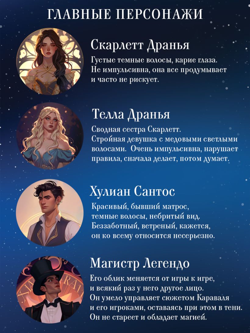 Добро пожаловать в Караваль — мир, где правда переплетается с ложью, реальность со сном, враги с друзьями, а любовь с ненавистью. Распутай загадки, рискуя собственным рассудком! Здесь можно навсегда потерять себя, ни в чем нельзя быть уверенным. Беспечное веселье ужасает, а границы реального мира стираются. Идеально для фанатов «Ночного цирка», «Голодных игр», сериалов «Люцифер», «Темные начала».