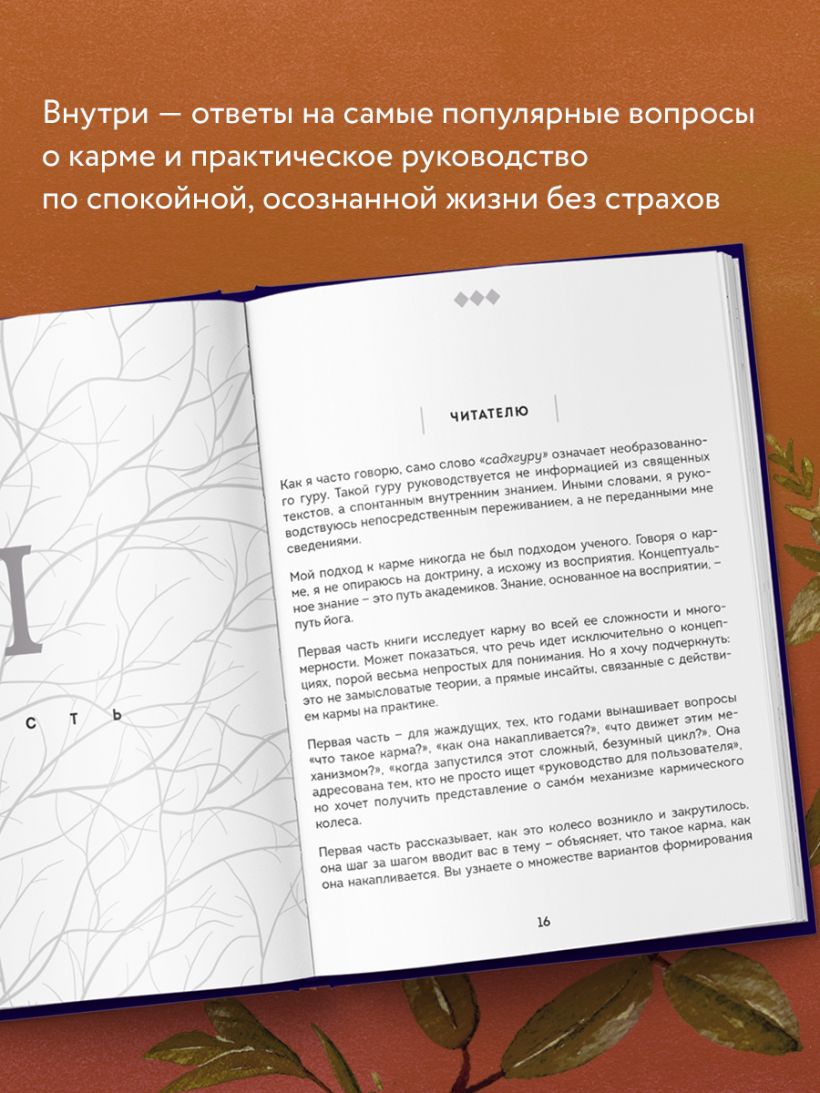 «Карма — это не вера, не священное писание, не идеология, не философия и не теория. Карма — это просто то, как все устроено. Экзистенциальный механизм. Подобно солнцу, карма есть независимо от того, признаете вы ее или нет, чтите ее или игнорируете. Карме не нужен фан-клуб». — Садхгуру