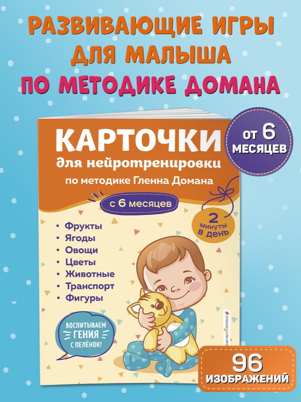 В книге — карточки для малышей. Они предназначены для занятий по методике Домана. 96 ярких реалистичных картинок, которые помогут развить ребенка, его интеллект, осуществить запуск речи. Развивающие игры с ними станут настоящим нейротренажером для детей с 6 месяцев.