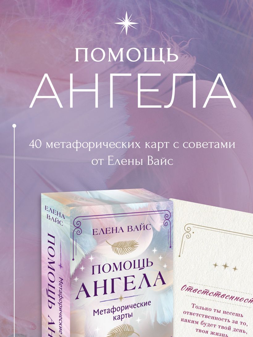 Елена Вайс, неопсихолог, основательница системы трансформации реальности PWS, создала данную колоду для помощи тем, кто готов принять в свою жизнь все блага Вселенной. PWS — это современная технология эффективной работы с болью, травматическим опытом, негативными программами и убеждениями, влияющими на нашу жизнь. Уникальная психологическая методика, через которую были рождены эти карты, позволит мягко привести тебя к позитивным изменениям через формирование нового поведения. «Помощь ангела» каждый день будет касаться твоей души и пробуждать в тебе любовь к жизни, к этому миру и к самой себе. Просто позволь ангелам обнять тебя своими крыльями.