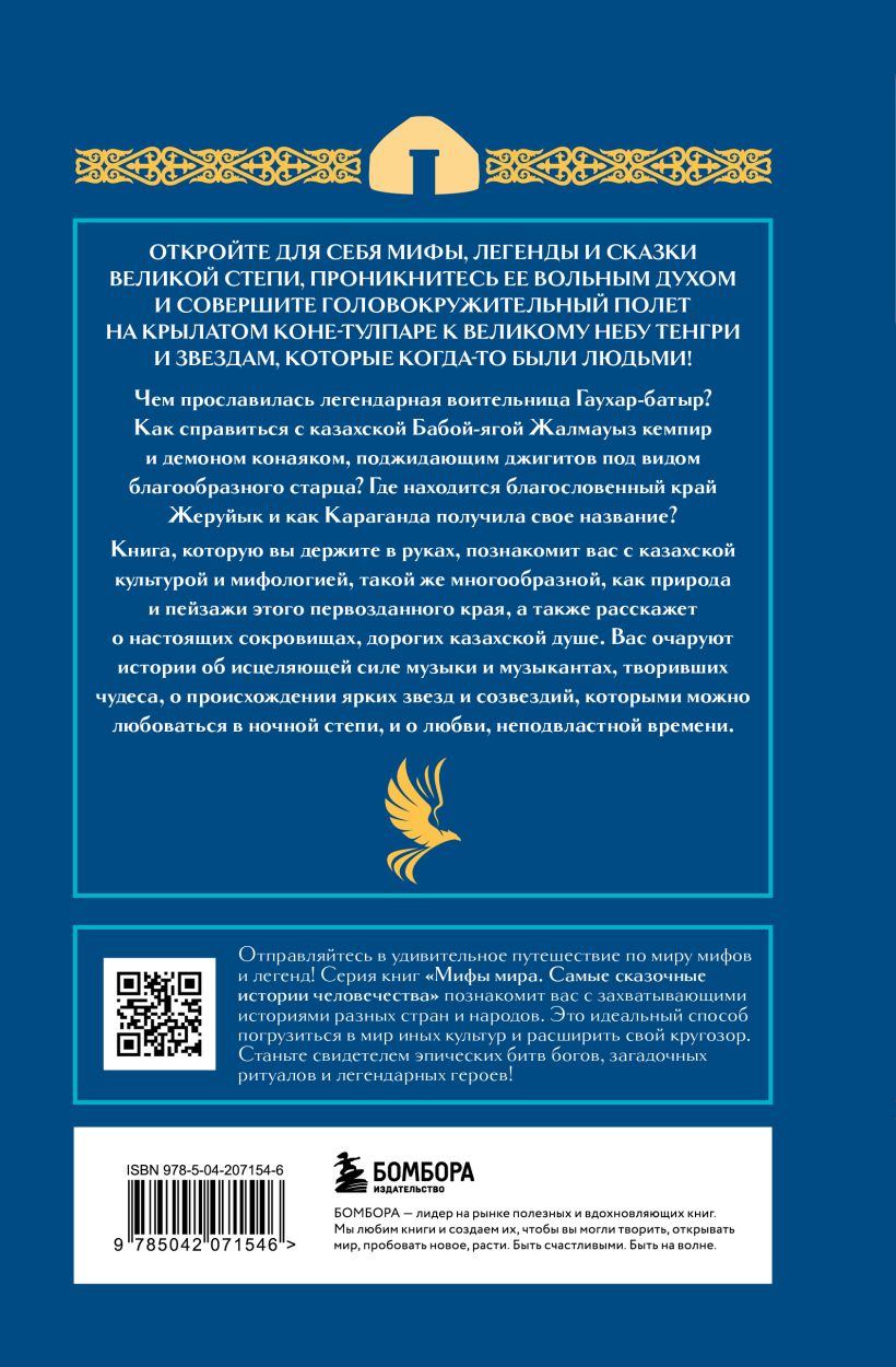 Книга «Казахские мифы» откроет вам удивительную, самобытную и пеструю, как цветущая степь, мифологию казахов. Вы узнаете, как бог неба Тенгри родился из пылающего яйца, а Мать-огонь От-Эне — из стопы другой великой богини, Умай, кто такие баксы и акыны и как легендарный поэт и певец Коркут создал кобыз, музыка которого исцеляет душу. Познакомитесь с совсем не дружелюбными существами казахской демонологии: златовласыми демоницами албасты, великанами и карликами, русалками кульдиргиш, которые, как их славянские сестры, заманивают юношей и щекочут их до смерти, красавицей-вампиршей жезтырнак с медными когтями и казахской Бабой Ягой Жалмауыз кемпир.