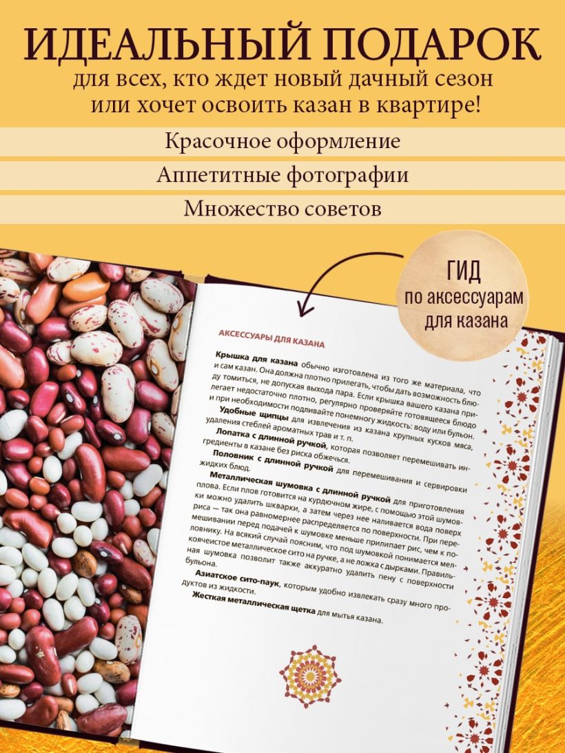 В подарочном издании сборника рецептов в сможете найти множество новых рецептов и, конечно же, познакомиться с разными вариациями приготовления уже полюбившихся блюд. Попробуйте приготовить жаркое с картошкой и грибами, овощное рагу с говядиной или даже компот из сухофруктов в афганском казане! Вас ждет: - Инструкции к применению афганского казана. - Теория по приготовлению разных видов продуктов: от мяса, до круп и бобовых. - Более 45 рецептов блюд восточной и европейской кухни. В подарочном оформлении эта книга отлично подойдет настоящему ценителю аутентичной готовки!