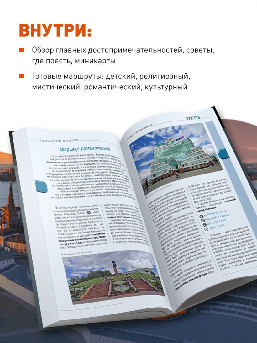 Перед вами гид по Казани — популярному туристическому направлению в России. В нем содержится актуальная и полезная информация о регионе, советы, как лучше провести первый и второй дни, куда сходить, а также Топ-25 главных достопримечательностей. В путеводителе вы найдете описания самых интересных мест в городе — Казанский кремль, исторический город за пределами центра и пригород Казани, а сориентироваться на местности помогут готовые маршруты и карты, расположенные на страницах гида. Вся необходимая информация о том, где остановиться и попробовать национальную кухню, куда пойти и как провести время, всегда доступна с серией путеводителей «Красный гид», которые удобно брать с собой в поездку. Для чего ехать в Казань? Конечно, чтобы своими глазами увидеть город, где мирно соседствуют Восток и Запад, где встречаются две культуры и две религии. Город, который с каждым годом становится все более интересным, сохраняя и создавая новые традиции. Казань сочетает в себе буйство мегаполиса и тишину уютного города. Добро пожаловать в столицу Республики Татарстан! Вся информация актуальна на 2025 год.