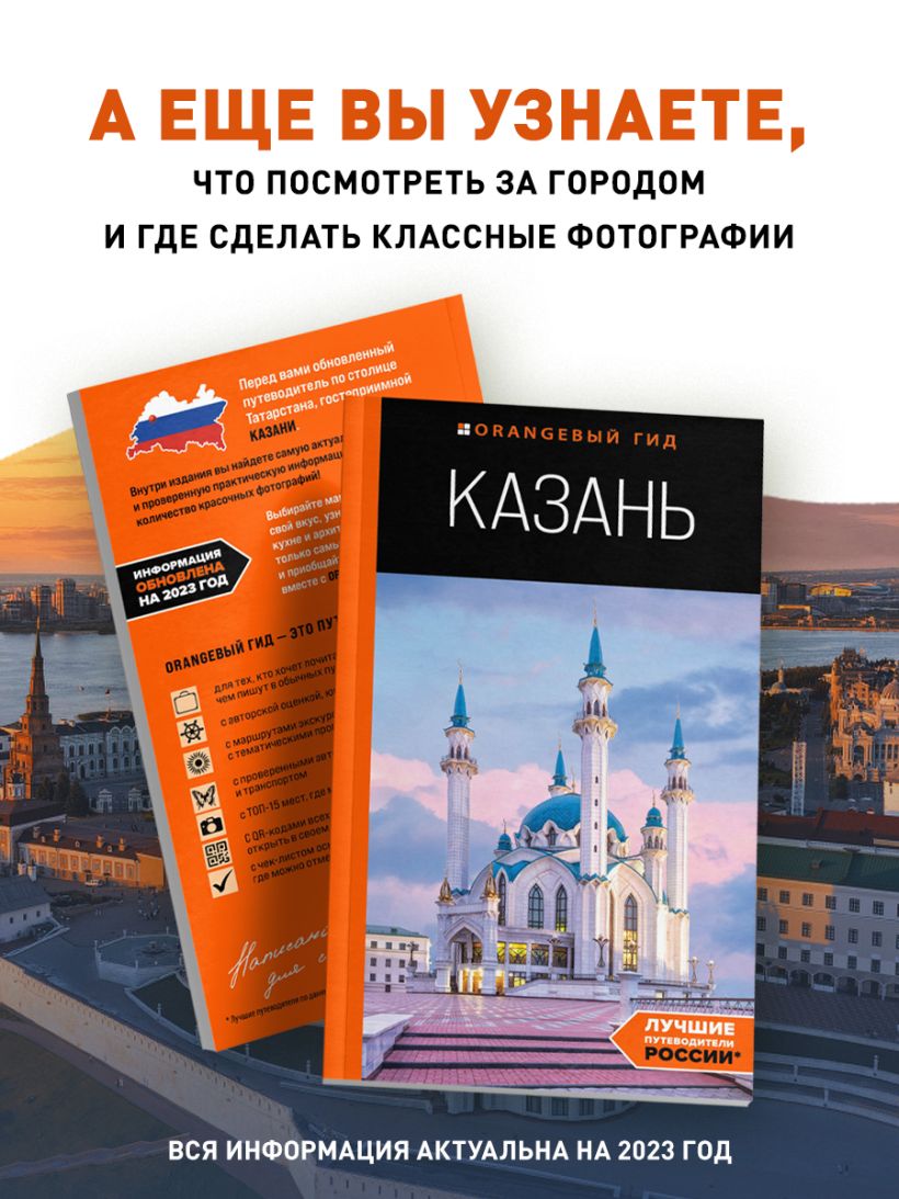 Встречайте абсолютно новый путеводитель по столице Республики Татарстан, гостеприимной Казани! Оксана Галибаева, автор и местный гид, собрала самые лучшие маршруты по городу и окрестностям, а также самые интересные локации для вашего яркого путешествия. Выбирайте маршруты прогулок на свой вкус, узнавайте новое о культуре, кухне и архитектуре города и посещайте только самые интересные места! Планируете полюбоваться Кремлем? Посетить все музеи? Увидеть город с лучших смотровых площадок? Отлично провести время на музыкальном фестивале или в театре? Обойти все древние церкви и мечети города? Перепробовать все соблазнительные блюда татарской кухни? Или отправиться в небольшое путешествие по окрестностям? Выбирайте то, что вам по душе, и отправляйтесь исследовать Казань! Желаем приятного отдыха, а «Оранжевый гид» вам в этом обязательно поможет!