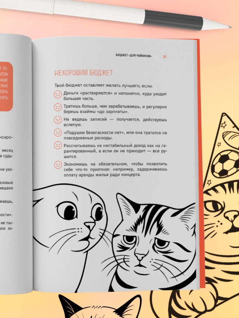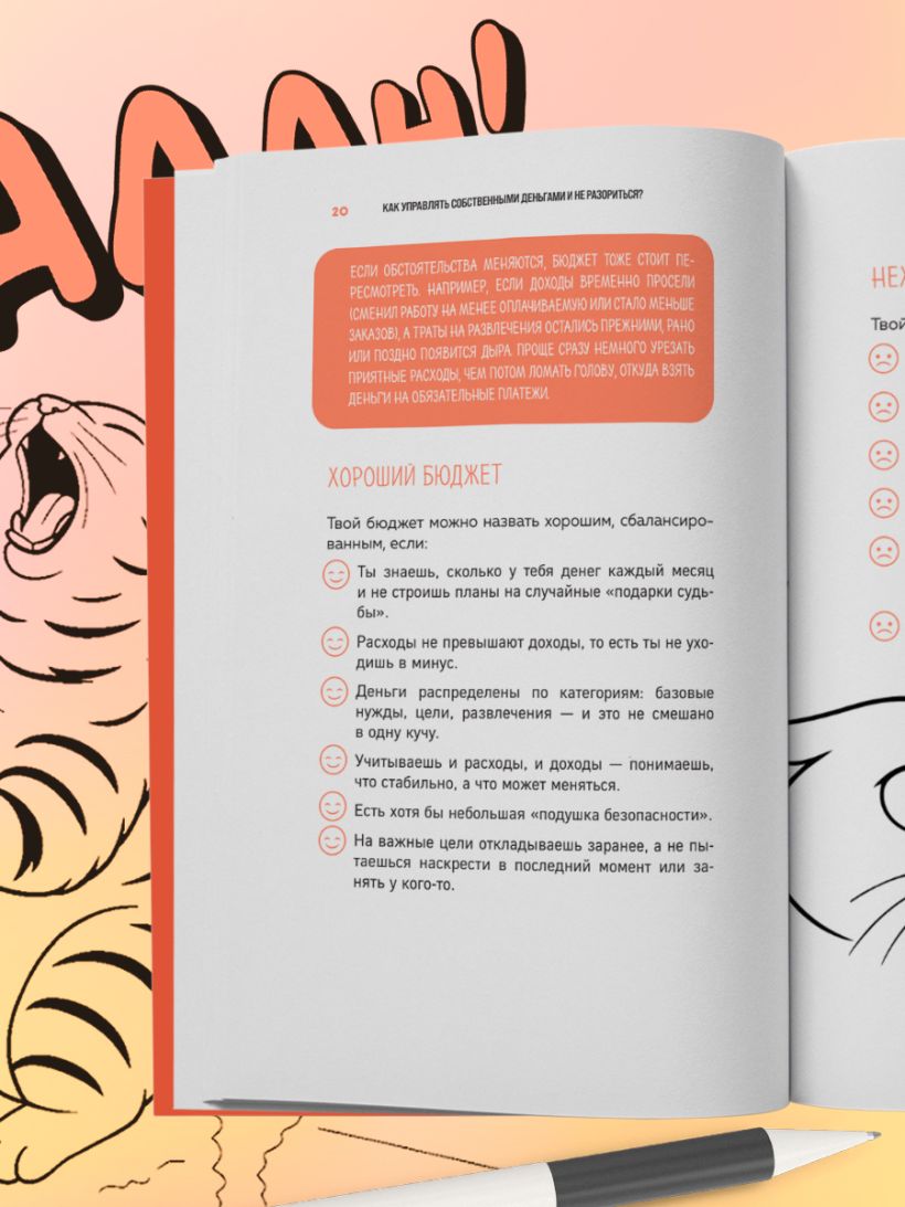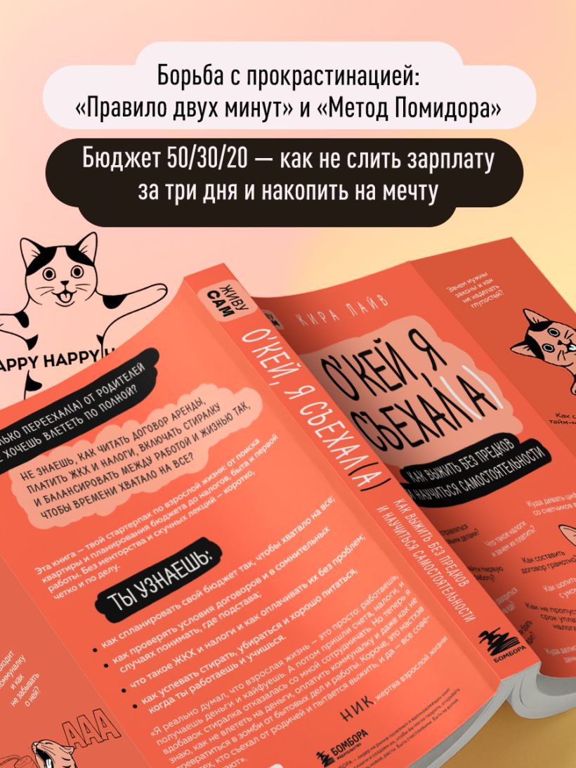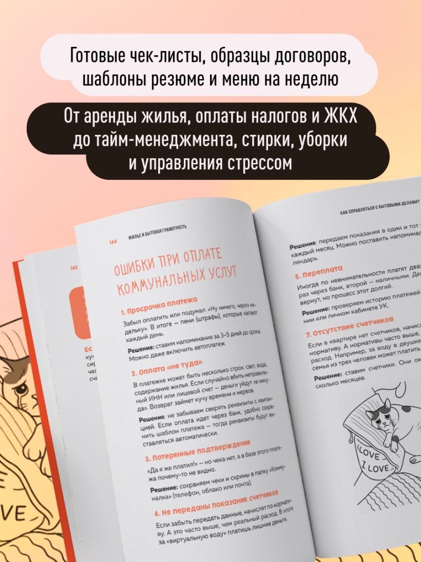 «Я реально думал, что взрослая жизнь — это просто: работаешь, получаешь деньги и кайфуешь. А потом пришли счета, налоги, и вдобавок стиралка отказалась со мной сотрудничать. Но теперь я знаю, как не влететь на лишние деньги, не забыть оплатить коммуналку и даже как не превратиться в зомби от бытовых дел и работы. Короче, это мастхэв для тех, кто съехал от родичей и пытается выжить, и да — советы работают». — Ник, жертва взрослой жизни
