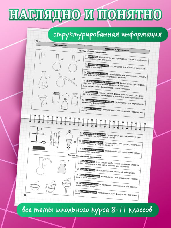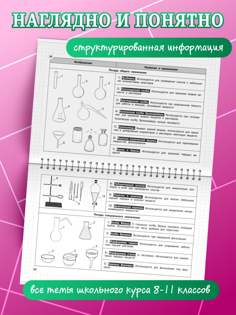• более 100 таблиц, которые особо важны на этапе осмысления законов, понятий, формул, а также при закреплении изученного материала;