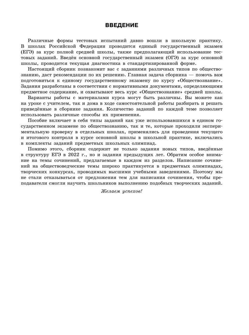 Пособие адресовано учащимся старших классов, планирующим сдавать ЕГЭ по обществознанию. Тренировочные задания позволят систематически, при прохождении каждой темы, готовиться к экзамену. В сборнике представлены задания разных типов по всем темам ЕГЭ с ответами и критериями оценивания. Задания максимально приближены к реальным, используемым на экзамене, но распределены по темам в порядке их изучения в 10—11 классах старшей школы. Пособие будет полезно учителям обществознания, так как даёт возможность эффективно организовать подготовку учащихся к ЕГЭ непосредственно на уроках, в процессе изучения всех тем. Работая с книгой, можно последовательно отработать каждую тему, устранить пробелы в знаниях, а также систематизировать изучаемый материал.