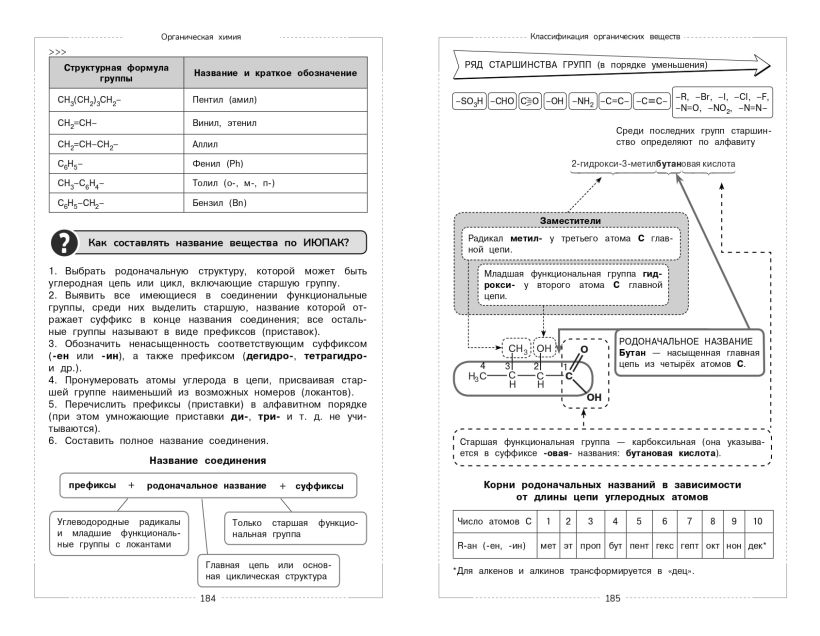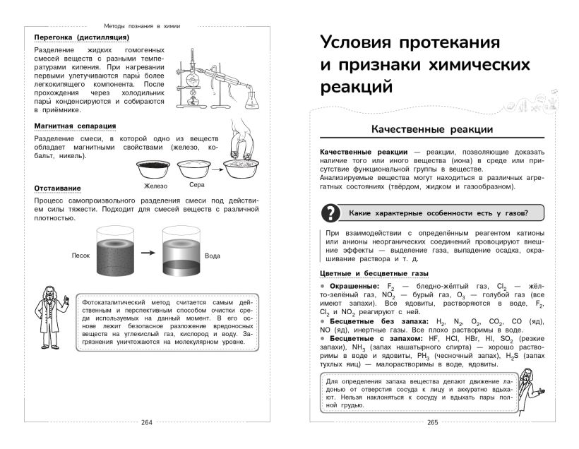 Справочник содержит важные материалы, которые помогут даже в сжатые сроки подготовиться к урокам, ОГЭ и ЕГЭ по химии. Теория школьного курса изложена в наглядной форме и дополняется блоком практических заданий c ответами для комплексного закрепления знаний. Информация представлена в максимально удобной и эффективной для изучения и запоминания форме — в схемах и таблицах, что обеспечит плодотворную и быструю подготовку к урокам, контрольным и различным экзаменам. В пособии можно найти все основные разделы предмета: «Теоретические основы химии», «Неорганическая химия», «Органическая химия», «Методы познания в химии», «Химия и жизнь», «Расчеты по химическим формулам и уравнениям реакций». В справочнике ученики 8-9-10-11 классов найдут много полезного для своего образования. Книжка станет незаменимым помощником для всех, кто хочет подтянуть свои знания или вспомнить уже изученные темы, подготовиться к урокам и экзаменам, а также будет прекрасным дополнением к учебнику и просто облегчит процесс учебы. Справочник будет полезен и для занятий родителей с детьми.