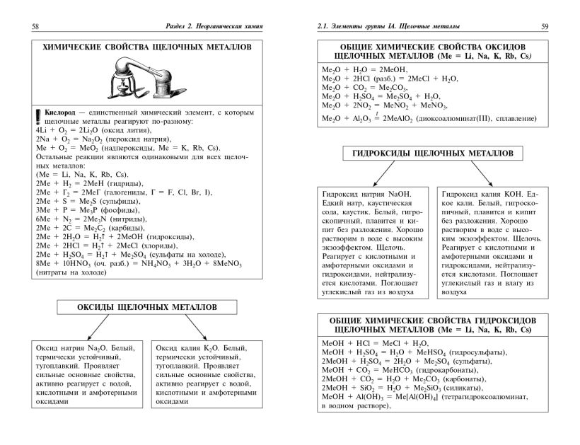 Справочник содержит важные материалы, которые помогут даже в сжатые сроки подготовиться к урокам, ОГЭ и ЕГЭ по химии. Теория школьного курса изложена в наглядной форме и дополняется блоком практических заданий c ответами для комплексного закрепления знаний. Информация представлена в максимально удобной и эффективной для изучения и запоминания форме — в схемах и таблицах, что обеспечит плодотворную и быструю подготовку к урокам, контрольным и различным экзаменам. В пособии можно найти все основные разделы предмета: «Теоретические основы химии», «Неорганическая химия», «Органическая химия», «Методы познания в химии», «Химия и жизнь», «Расчеты по химическим формулам и уравнениям реакций». В справочнике ученики 8-9-10-11 классов найдут много полезного для своего образования. Книжка станет незаменимым помощником для всех, кто хочет подтянуть свои знания или вспомнить уже изученные темы, подготовиться к урокам и экзаменам, а также будет прекрасным дополнением к учебнику и просто облегчит процесс учебы. Справочник будет полезен и для занятий родителей с детьми.
