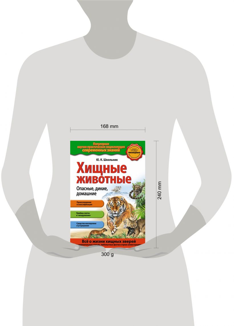 Книга "Хищные животные. Опасные, дикие, домашние" рассказывает обо всех видах животных отряда хищные. Вы узнаете, как выглядел общий предок медведя, лисы, выдры, енота, ласки, кошки и собаки. Вы убедитесь, что хищники живут на земле и под землёй, на деревьях и в воде. Книга поведает о том, каким оружием природа наделила охотников, какими хитрыми приёмами они пользуются, чтоб одолеть ловкую и быструю жертву. Рекомендуется как дополнительная литература по предметам "Окружающий мир" и "Биология".