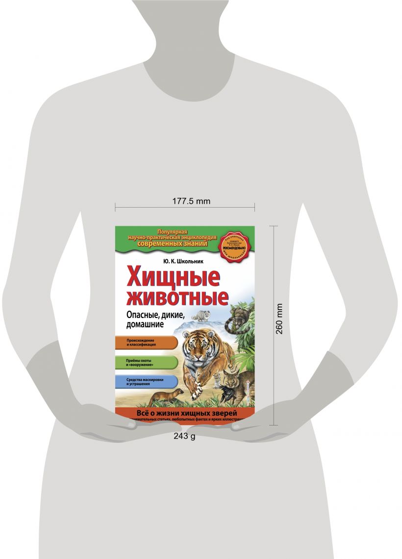 Книга "Хищные животные. Опасные, дикие, домашние" рассказывает обо всех видах животных отряда хищные. Вы узнаете, как выглядел общий предок медведя, лисы, выдры, енота, ласки, кошки и собаки. Вы убедитесь, что хищники живут на земле и под землёй, на деревьях и в воде. Книга поведает о том, каким оружием природа наделила охотников, какими хитрыми приёмами они пользуются, чтоб одолеть ловкую и быструю жертву. Рекомендуется как дополнительная литература по предметам "Окружающий мир" и "Биология".