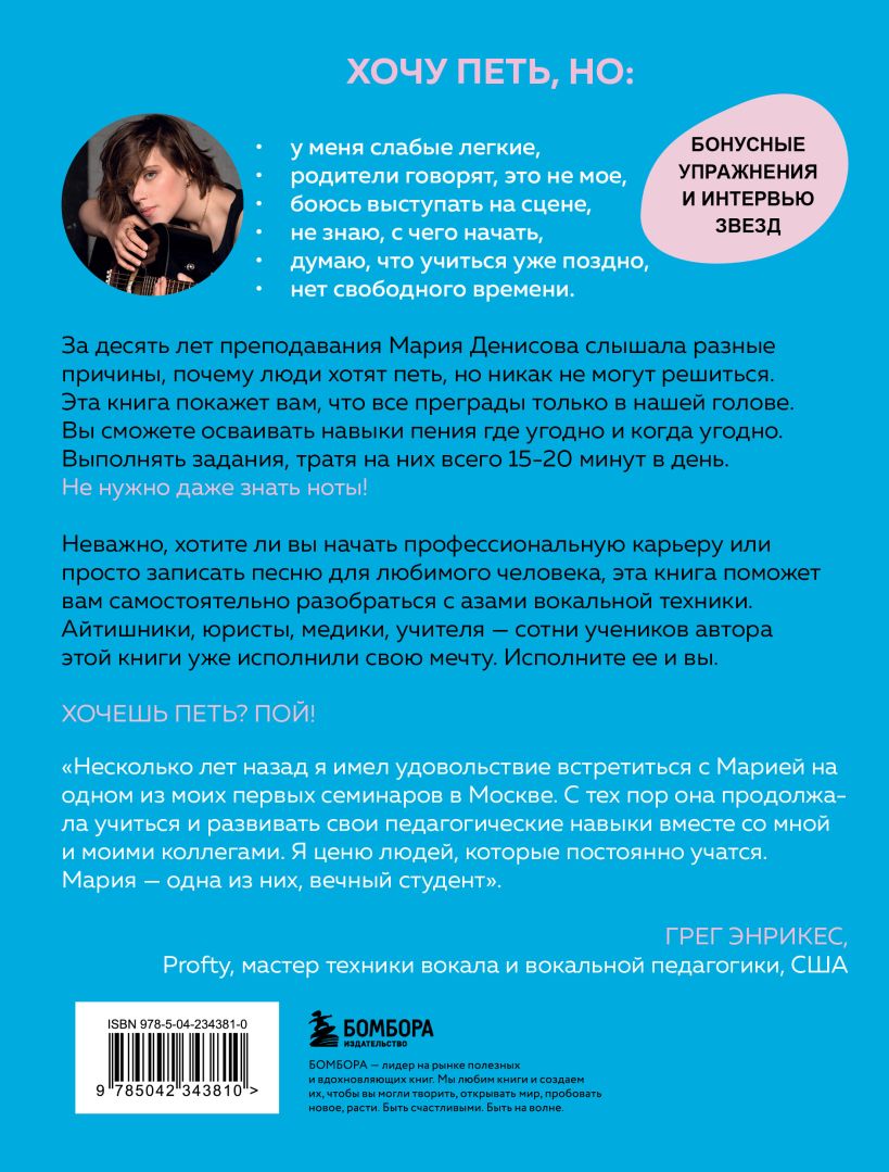 Программисты, юристы, медики, учителя общеобразовательных школ и представители других немузыкальных профессий — неважно, кто вы и чем занимаетесь по жизни. Эта книга докажет, что вокал — искусство для всех. Вперед, к мечте! Хочешь? Пой!