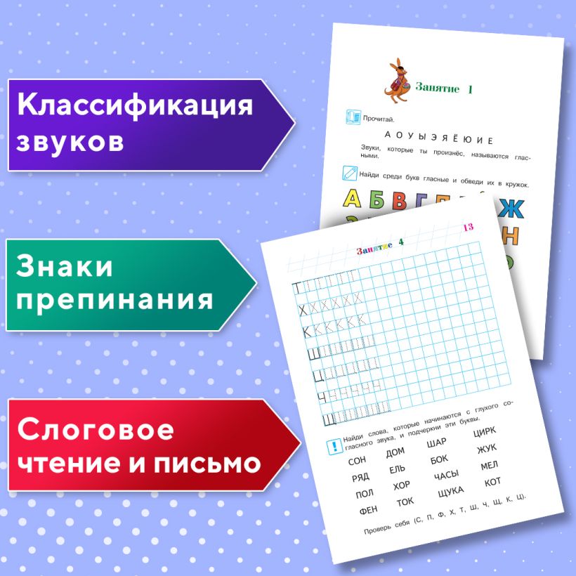 Выполняя интересные игровые задания, ребенок научится различать гласные и согласные звуки, твердые и мягкие, звонкие и глухие согласные, определять количество слогов в слове, поймет, что есть слова, которые имеют несколько значений, узнает, что предложение начинается с заглавной буквы и в конце него ставится либо точка, либо вопросительный, либо восклицательный знак. Знания, умения и навыки, которые дошкольник приобретет в результате занятий, позволят ему почувствовать уверенность в себе и в дальнейшем их успешно использовать. Кроме того, в пособии имеются методические рекомендации, которые подскажут, как правильно организовать занятие с ребенком.