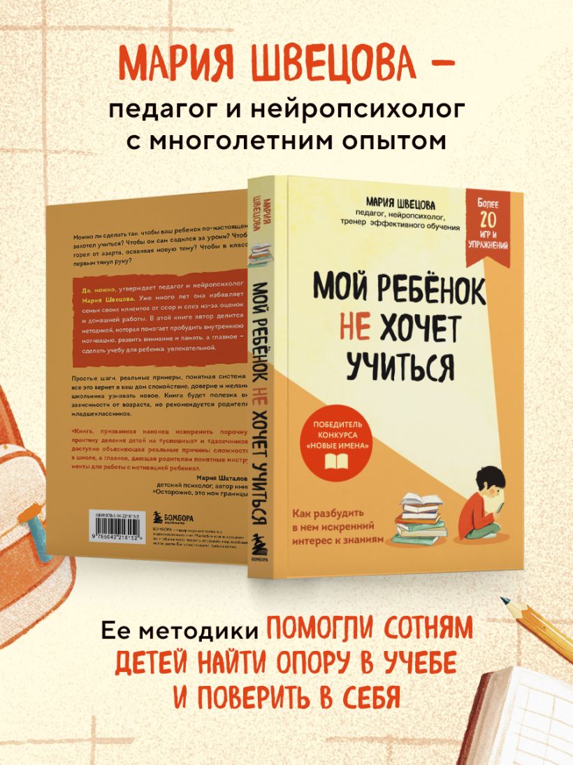 «Книга, призванная наконец искоренить порочную практику деления детей на "успешных" и "двоечников", доступно объясняющая реальные причины сложностей в школе, а главное, дающая родителям понятные инструменты для работы с мотивацией ребенка». — Мария Шаталова, детский психолог, автор книги «Осторожно, это мои границы!»