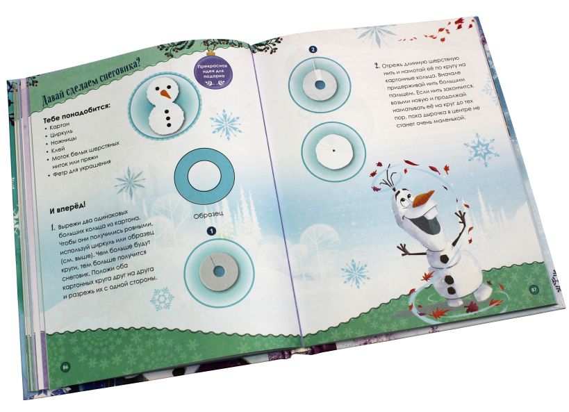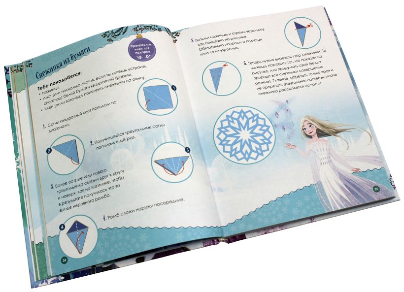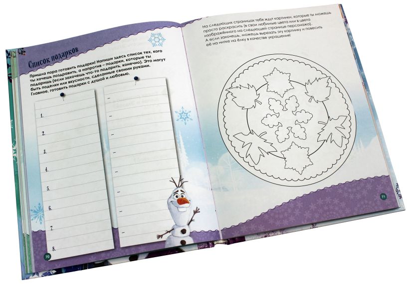 А ещё эта книга прекрасно подойдёт и в качестве подарка, ведь она большого формата, украшена нарядной фольгой, а все страницы сопровождают яркие цветные иллюстрации с героями любимого мультфильма! А ещё все весёлые идеи, предложенные в ней, прекрасно подойдут и для длинных новогодних каникул!