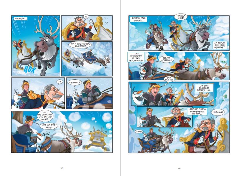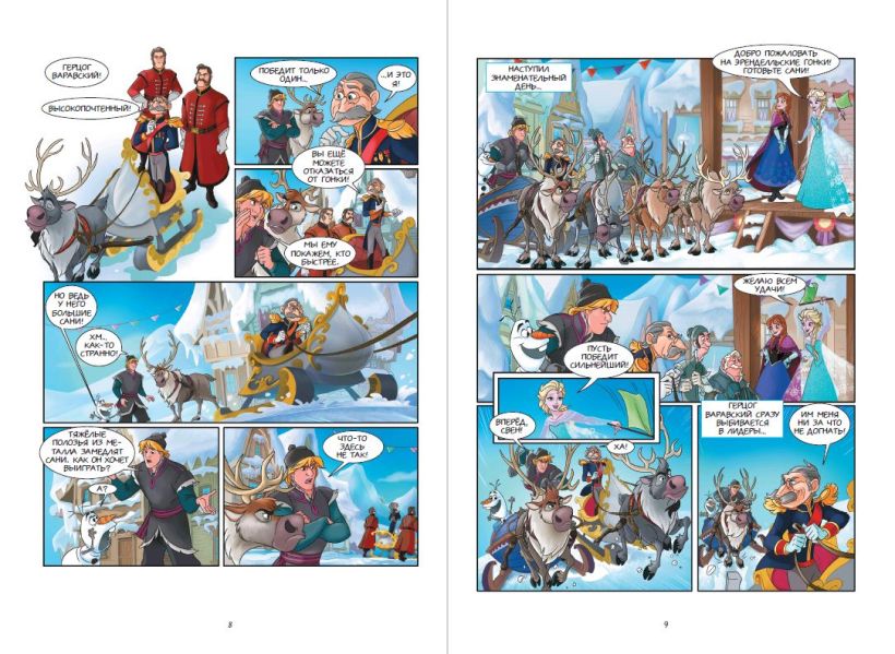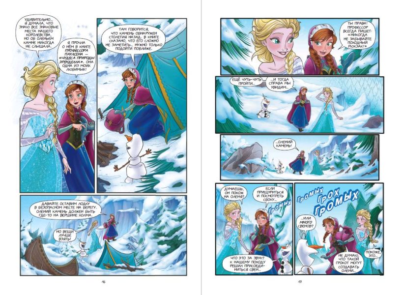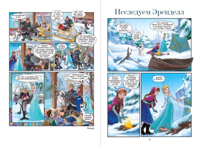 Встречай любимых героев — Анну, Эльзу, Олафа, Кристоффа и Свена — в новых захватывающих историях в формате комиксов! Друзей ждёт весёлая зимняя рыбалка, скоростные гонки на санях, страшилки у костра и море дружбы, игр, радости и веселья!