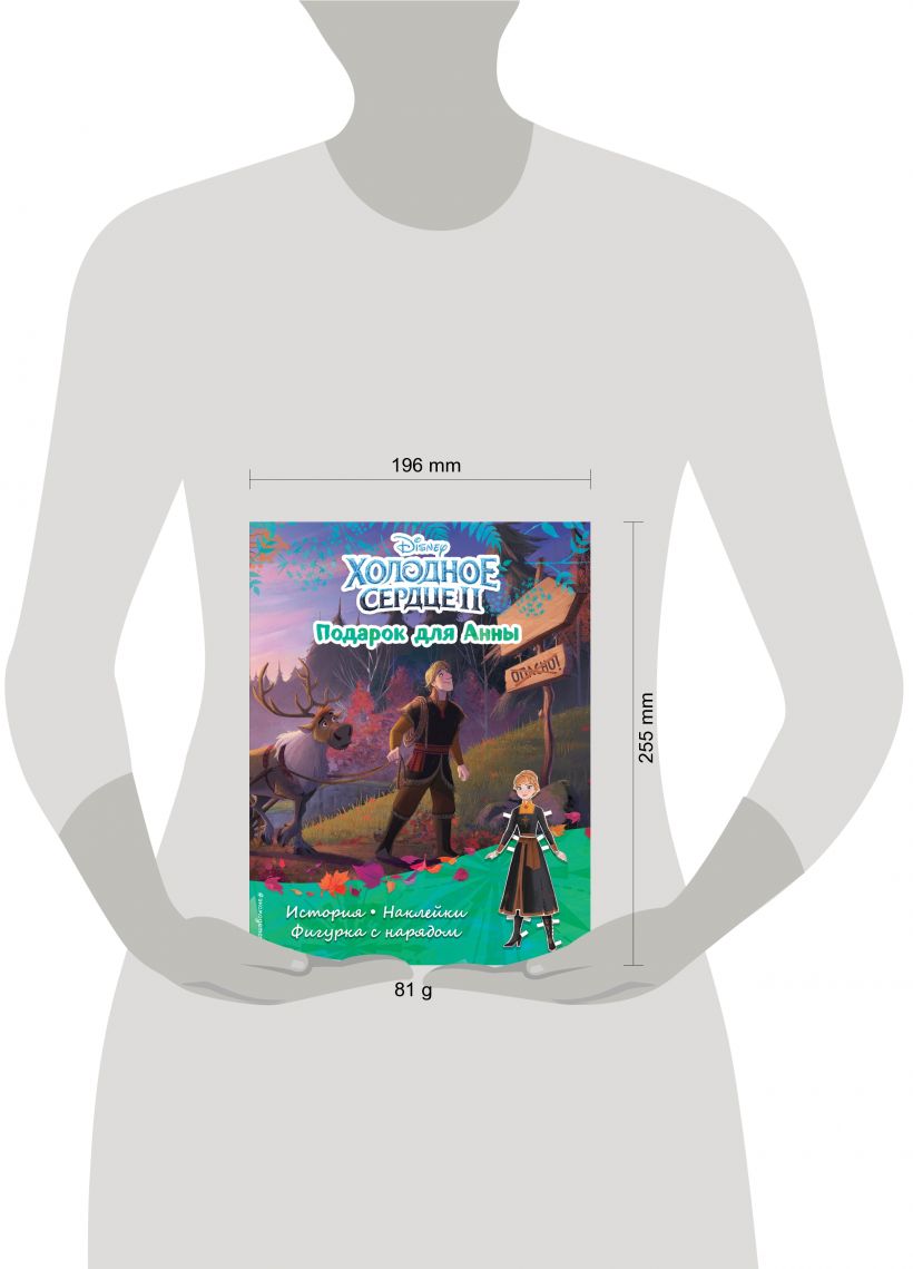 Тебя ждёт чудесная история о том, как Кристофф отправился в горы за особенным подарком для Анны… А ещё бумажная фигурка Анны с прекрасным нарядом, игры из самого Эренделла и больше 50 наклеек!