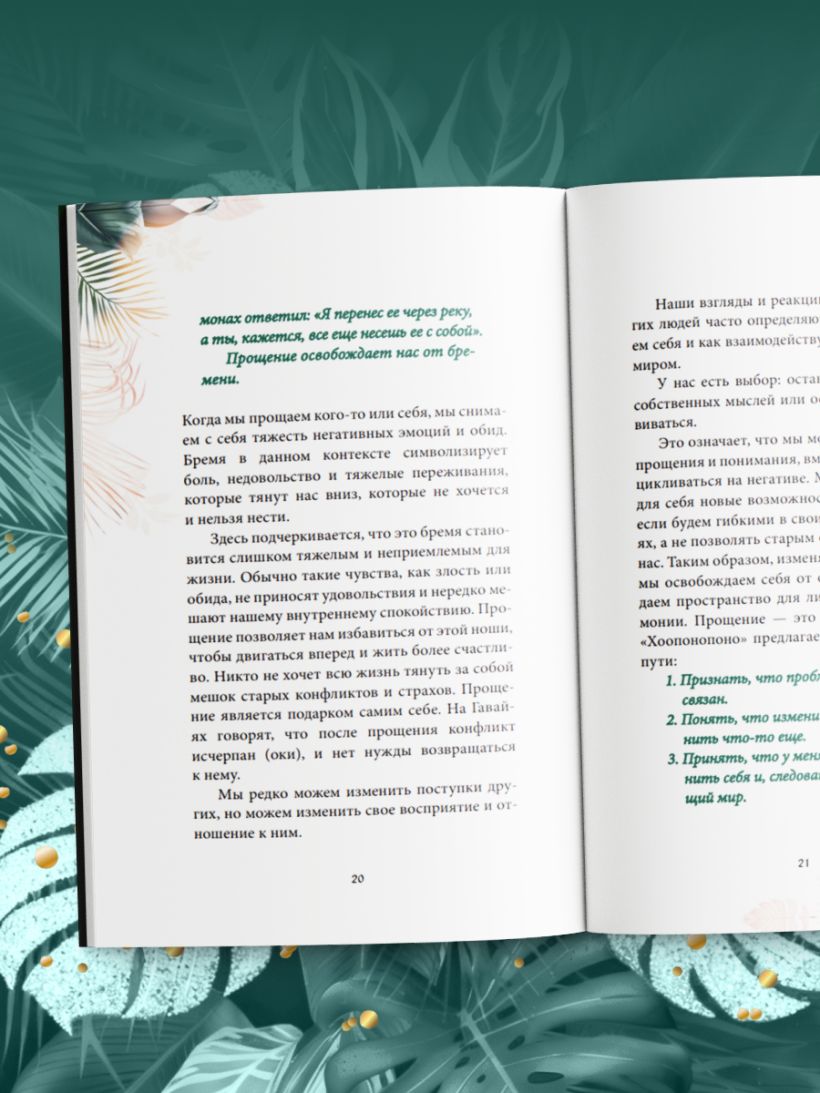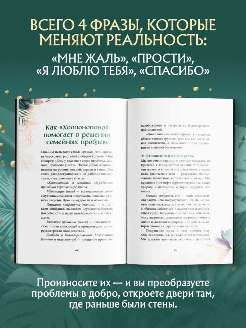 Хоопонопоно — это древние гавайские методы обретения гармонии и внутреннего покоя. Они позволяют легко решать проблемы и трансформировать их в добро. «Мир начинается с тебя!» — гласит гавайская мудрость. Каждый человек несет ответственность за свои собственные поступки и за те события, которые происходят во внешнем мире. Окружающий мир тесно связан с нашим внутренним состоянием, с эмоциями и мыслями. Поэтому, меняя внутренние установки, можно преобразовывать мир вокруг.